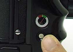 Beim Drücken des Batterieprüfknopfes muss die Anzeigenadel in den grünen Bereich springen.