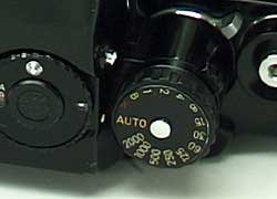 Die LED's im Sucher zeigen die gemessene Zeit nach Blendenvorwahl an. Steht das Zeitenrad auf "AUTO",